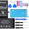 Battery for iPhone X, Rechargeable Battery for A1865 A1901 A1902 with Complete Replacement Kits, 2 Set Adhesive Strips and Seal -0 Cycle High Capacity