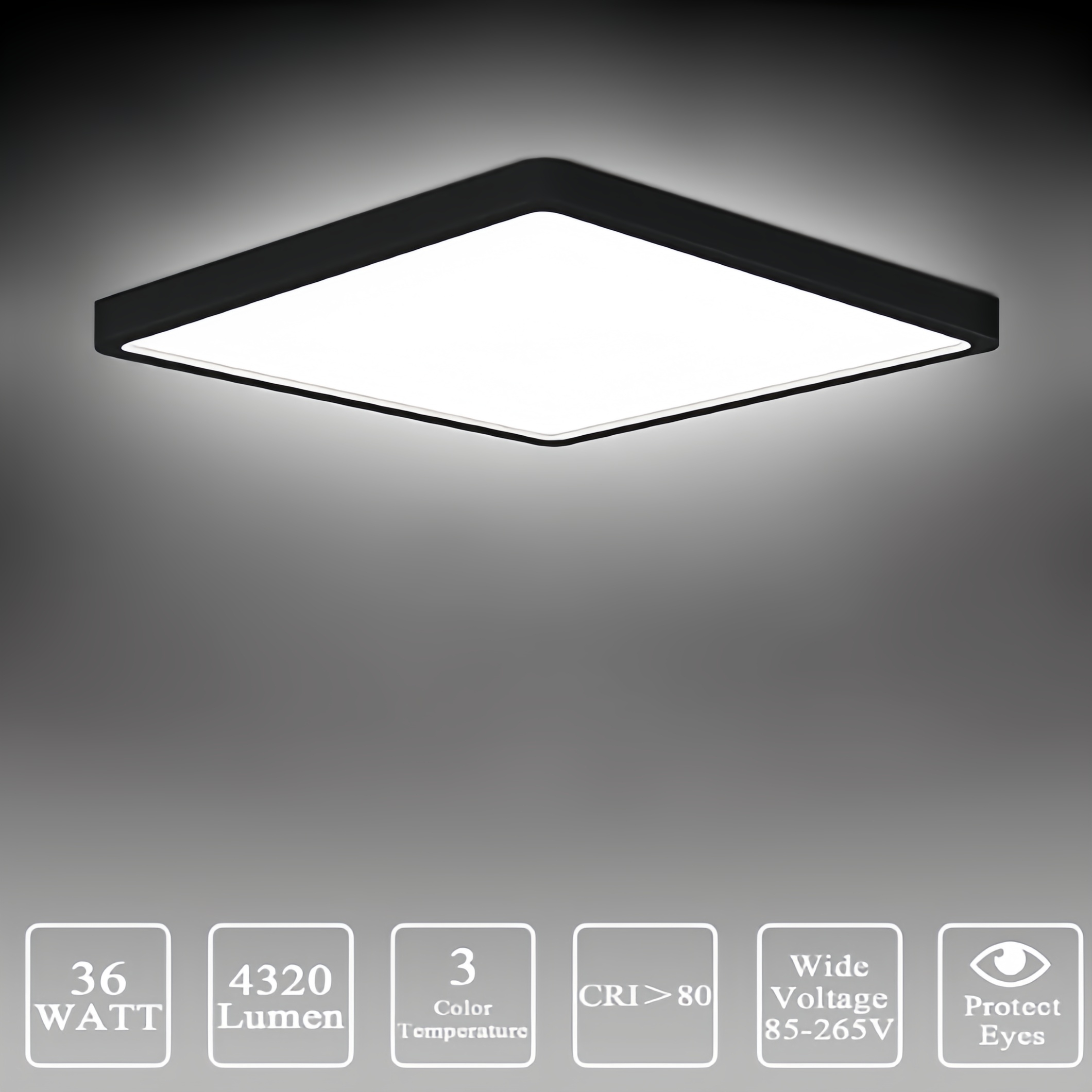 Flush Mount Ceiling Light, 3000K/4500K/6500K switchable Ceiling Light, 12 Inch flush mount light, 36W Square Ceiling Mount Light Fixture for Kitchen, Bedroom, Living Room, Dining Room